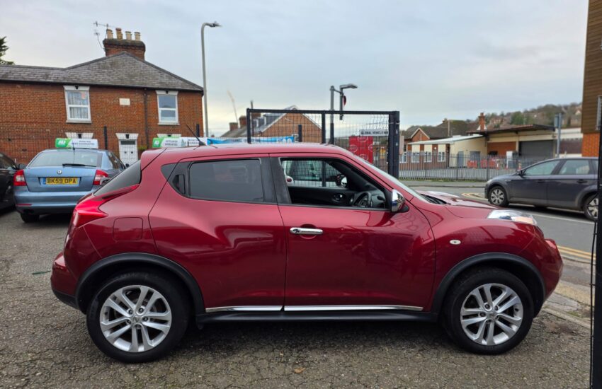 Welcome To Global Vehicle Hub, here we have to present you with a stunning looking Nissan Juke Acenta Premium SUV, it has a 1.6L petrol engine, 97k miles driven. It has 5 doors, 5 seats, 17 inch alloys wheels, 2 keys, V5. Front fog lamps, Climate control, Reverse camera, Aux, Bluetooth, Touch screen multi media, Rear privacy glass and much more options. HPi clear no previous category with 4 previous owners. Very clean car in and out, drives smooth, great fuel average. ULEZ compliant. We are based in High Wycombe, with over 15+ vehicles in stock at our showroom. Online video bookings now available, you can now video call us to see the car while youre at home or at work, to book yourself in for a viewing, give us a call, test drives are welcome. This 2012 Nissan Juke Acenta Premium is offered with a full 12 months MOT for your peace of mind. This stylish hatchback is equipped with a reliable 1.6 litre petrol engine and benefits from partial service history, with its last service completed at 46069 miles. Inside, you will find a host of useful features designed for your comfort and convenience, including climate control air conditioning, Bluetooth telephone integration for hands free calls, and a colour reversing camera complete with rear parking assistance. The Nissan Juke Acenta Premium stands out with its impressive fuel economy, achieving up to 49 miles per gallon, which is better than many other vehicles in its class. Furthermore, this particular model is in a low insurance group, meaning your running costs will be kept to a minimum. It also boasts low CO2 emissions, making it a more environmentally conscious choice.